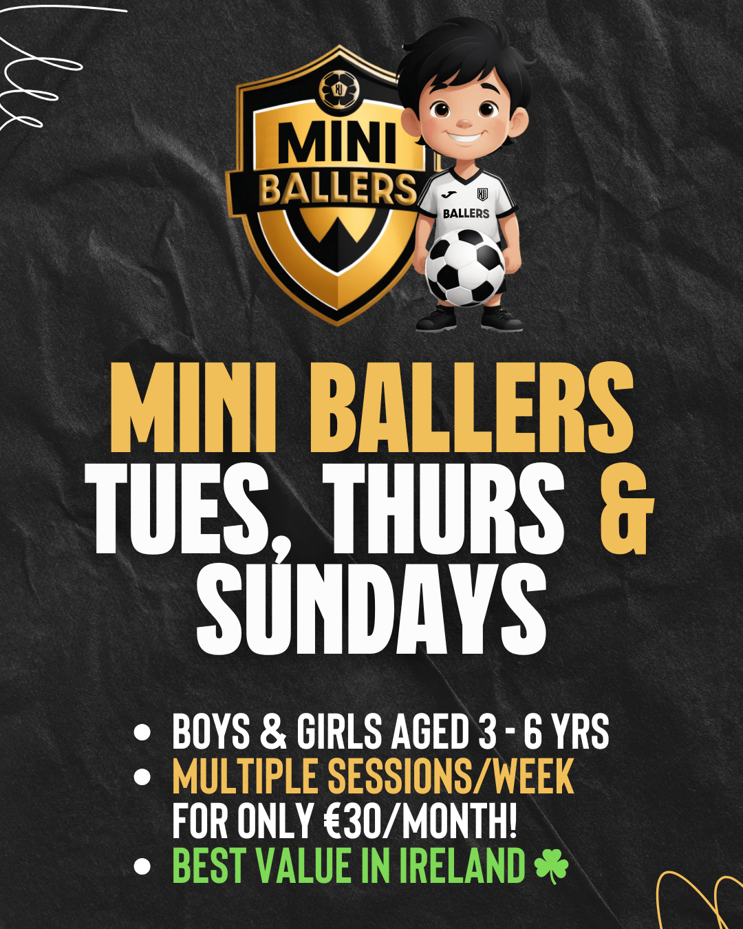 ➡️ XV Mini Ballers is for boys and girls aged 3 - 6yrs old. Monthly membership is be €30 per child/month, additional siblings at €20/month.